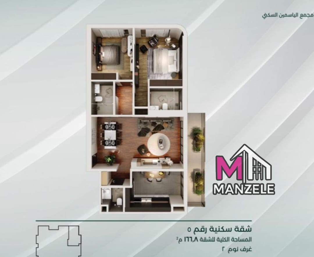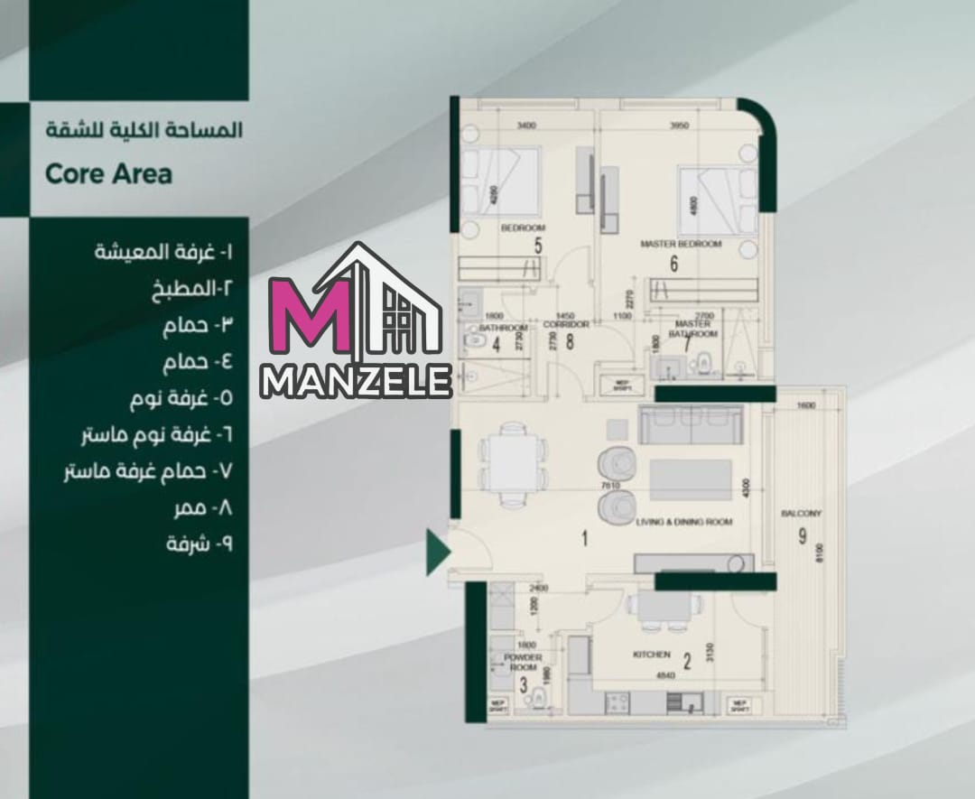 . غرفة المعيشة . المطبخ . حمام . حمام . غرفة نوم . غرفة نوم ماستر . حمام غرفة ماستر . ممر . شرفة السعر : 1- الطوابق المنخفضة (1-10) . سعر المتر المربع 1,600 $ 2- الطوابق المتوسطة (11-20) . سعر المتر المربع: $ 1,650 3- الطوابق العليا (21-28) . سعر المتر المربع: $ 1,700