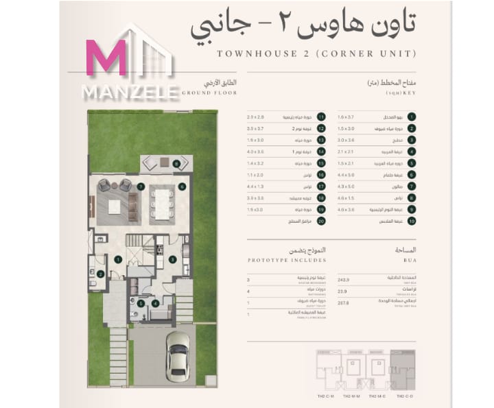 3 مناطق معيشة رئيسية (صالون، غرفة معيشة غرفة طعام).