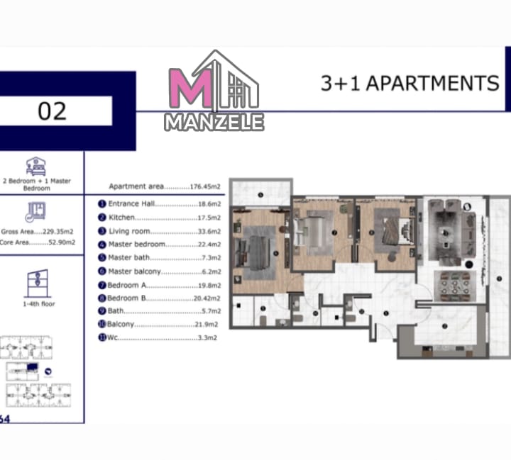 نوع الوحدة : شقة 3+1 الطابق : متوفرة في الطوابق من الأول إلى الرابع. تفاصيل الوحدات : . الصالة . المطبخ مدخل القاعة . غرفة النوم الرئيسية (ماستر) . الحمام الرئيسي شرفة الغرفة الرئيسية . غرفة نوم 1 . غرفة نوم 2 . شرفة الغرفة . الحمام المشترك . الشرفة الرئيسية (بالكون) . حمام الضيوف (مرحاض)