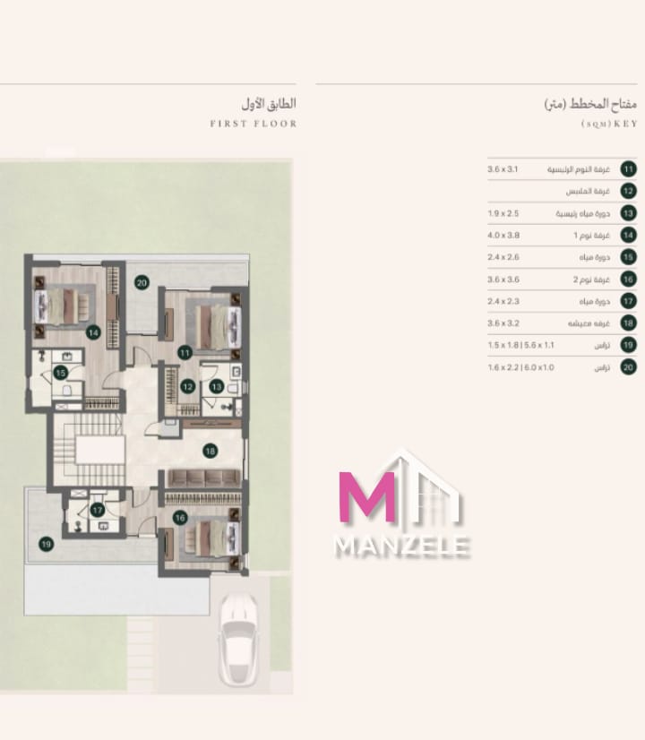 المعيشة والاستقبال صالون غرفة طعام غرفة معيشة عائلية، وبهو مدخل. الخدمات مطبخ غرفة مربية غرفة ملابس و 3 تراسات