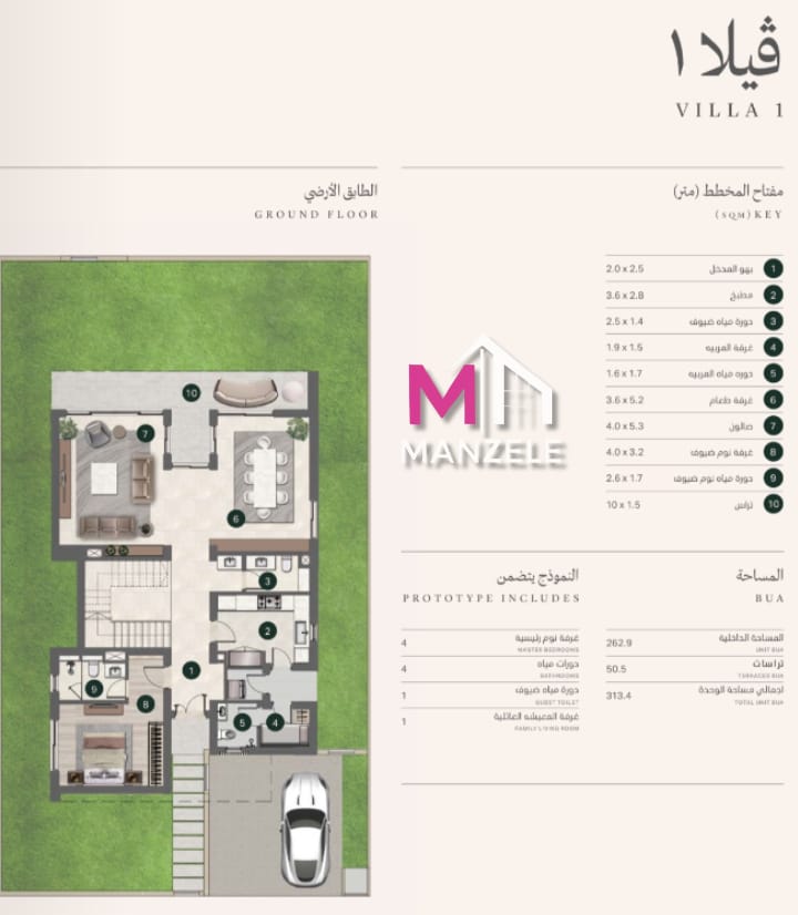 الإجمالي : ( 313.4 ) م²