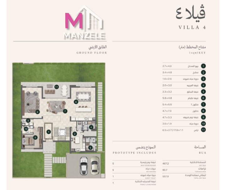 . غرفة صالون 1 + غرفة طعام (أرضي)2 + غرفة جلوس عائلية 1